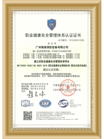 職業(yè)健康安全管理體系認證證書